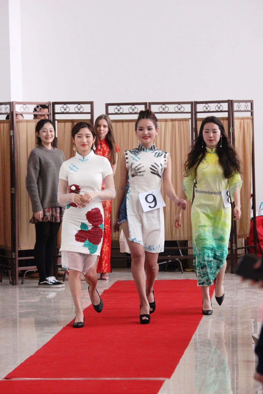 An hour later, it was time for the models. On a fifteen-meter long red carpet, there were models dressed in designed Cheongsam and others models on different style cheongsams. Students at present were amazed and cheered for their stunning dresses and professional catwalk.